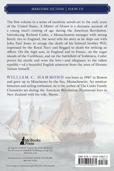 The first volume in a series of maritime novels set in the early years of the United States, A Matter of Honor is a dramatic account of a young man's coming of age during the American Revolution. Introducing Richard Cutler, a Massachusetts teenager with strong family ties to England, the novel tells his story as he ships out with John Paul Jones to avenge the death of his beloved brother Will.