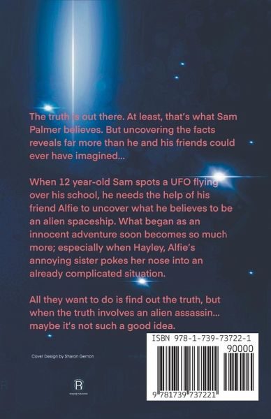 The truth is out there. At least, that's what Sam Palmer believes. But uncovering the facts reveals far more than he and his friends could ever have imagined… When 12 year old Sam spots a UFO flying over his school, he needs his friend Alfie's help to uncover what he believes to be an alien spaceship. What began as an innocent adventure soon becomes so much more; especially when Hayley, Alfie's annoying sister pokes her nose into an already confusing situation. All they want to do is find out the truth, but when the truth involves an alien assassin… maybe it's not such a good idea.