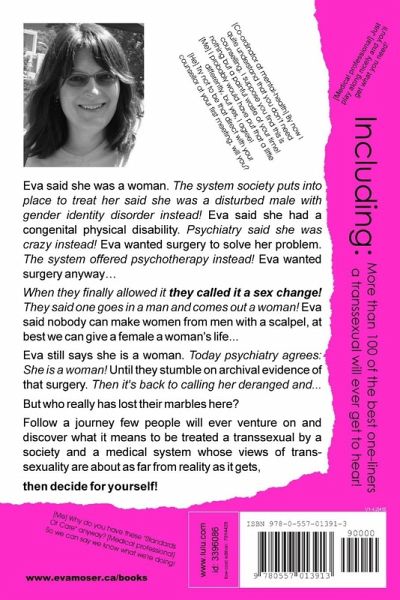 Eva said she was a woman. Psychiatry said she was a disturbed male instead! Eva wanted her body fixed. The system wanted her mind changed! Transsexuality: A physical disability or a mental illness? Who knows? Who is right? Follow Eva through a maze of ignorance and absurdity on a journey few people will ever venture on and experience what it means to be treated a transsexual by a society and a medical system whose views of transsexuality are about as far from reality as it gets! Then decide for yourself!