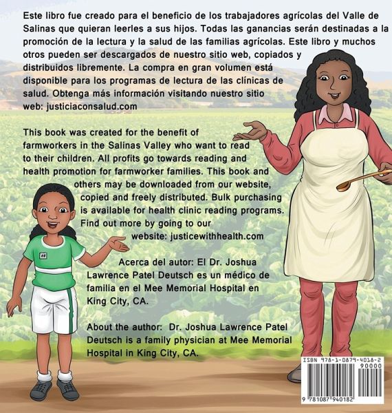 Maya es una niña de 7 años a la que le encanta comer sano. Está orgullosa de la dieta de su familia a base de tortillas, frijoles y verduras. Creado por un médico de familia, este libro está diseñado para fomentar una alimentación saludable en las familias de trabajadores agrícolas. Está escrito en inglés y español y es apropiado para niños de 2 a 5 años. Con suerte, Maya también puede inspirar a su familia. Maya is a 7 year old girl who loves to eat healthy. She is proud of her family's diet of tortillas, beans and vegetables. Created by a family physician, this book is designed to encourage healthy eating in farmworker families. It is written in English and Spanish and appropriate for children ages 2 to 5. Hopefully, Maya can inspire your family too.