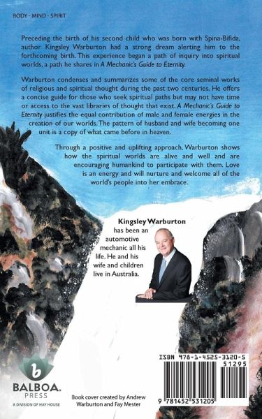 Preceding the birth of his second child who was born with Spina-Bifida, author Kingsley Warburton had a strong dream alerting him to the forthcoming birth. This experience began a path of inquiry into spiritual worlds, a path he shares in A Mechanic's Guide to Eternity. Warburton condenses and summarizes some of the core seminal works of religious and spiritual thought during the past two centuries. He offers a concise guide for those who seek spiritual paths but may not have time or access to the vast libraries of thought that exist. A Mechanic's Guide to Eternity justifies the equal contribution of male and female energies in the creation of our worlds. The pattern of husband and wife becoming one unit is a copy of what came before in heaven. Through a positive and uplifting approach, Warburton shows how the spiritual worlds are alive and well and are encouraging humankind to participate with them. Love is an energy and will nurture and welcome all of the world's people into her embrace.