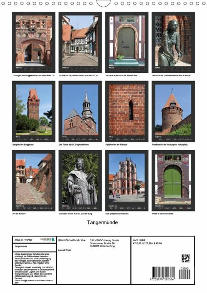 Die alte Kaiserstadt Tangermünde in der Altmark ist reich an architektonischen Kostbarkeiten. Einige davon zeigt dieser Kalender in Ansichten und Detailaufnahmen, so das spätgotische Rathaus, Teile der Altstadt sowie das Neustädter Tor, das zu den schönsten mittelalterlichen Toranlagen in Norddeutschland zählt.