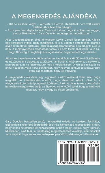"- Hát te kicsoda vagy? - kérdezte a Hernyó. Kezdetnek nem volt valami biztató. Alice félénken rebegte: - Ezt e percben aligha tudom. Csak azt tudom, hogy ki voltam ma reggel, amikor fölébredtem. De azóta már rengetegszer megváltoztam." Alice Csodaországban cím¿ könyvében Lewis Carroll f¿szerepl¿jét, Alice-t egy keresésre indítja, hogy megtalálja, ki is ¿. Ebben a keresésben számos olyan szerepl¿vel találkozik, akik készséggel rámutatnak arra, hogy ki ¿ és ki nem. A megfigyeléseik els¿sorban torzak és nem kicsit abszurdak. A jó hír, hogy Alice végül megtalálja önmagát azáltal, hogy belenéz egy tükörbe. Alice-hez hasonlóan a legtöbb ember az identitását a körülötte él¿k ítéleteire és néz¿pontjaira alapozza; szül¿kére, tanárokéra, lelkészekére, barátokéra, testvérekére, és ne feledkezzünk meg a médiáról sem. Olyan sok ítélkezés és annyi néz¿pont vesz körül bennünket, hogy nagyon könny¿ összezavarodni azzal kapcsolatban, hogy kik vagyunk. A megengedés ajándéka egy egyszer¿ eszközkészletet kínál arra, hogy megtaláld az identitásodat anélkül, hogy elvesznél mások rólad és a világodról alkotott néz¿pontjainak ködében. A könyv olvasása és az eszközök használata megváltoztathatja az életedet, és lehet¿vé teszi, hogy te határozd meg azt, hogy ki vagy és ki szeretnél lenni.