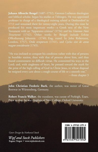 Johann Albrecht Bengel (1687-1752), German Lutheran theologian and biblical scholar, began his studies at Tuebingen. He was appointed professor in charge of a theological training school at Denkendorf in 1713 and remained there for twenty-eight years. During this time he produced his most important works: a Greek text of the New Testament with an 'Apparatus criticus' (1734) and his 'Gnomon Novi Testamenti' (1742). Other works by Bengel include 'Erkrte Offenbarung Johannis' (1740; Eng. transl. by John Robertson, London, 1757), 'Ordo temporum' (1741), and 'Cyclus sive de anno magno consideratio' (1745).