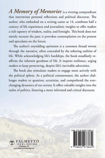 Delve into a 50-year journey of life's complexities and political evolution. Experience a blend of optimism in the face of adversity. A call to ponder, endure, and cherish life's reality. A Memory of Memories is not a guidebook filled with slogans or mottos. Instead, it is an honest exploration of life's realities. It pushes the reader to question, to think, and to discover their own truths. It is a treasure trove of wisdom, experience, and inspiration, making it a must-read for anyone seeking to challenge their perspectives and enrich their understanding of life and politics. This book is much more than a collection of thoughts; it is a journey that navigates through life's complexities and society's evolution. It is a narrative of endurance, optimism, and the enduring beauty of reality. It is a book that will inspire, challenge, and provoke thought - a perfect addition to any thoughtful reader's collection.