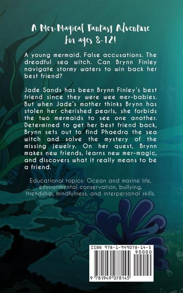 A Magical Mermaid Fantasy Adventure for Ages 8-12! A young mermaid. False accusations. The dreadful sea witch. Can Brynn Finley navigate stormy waters to win back her best friend? Jade Sands has been Brynn Finley's best friend since they were wee mer-babies. But when Jade's mother thinks Brynn has stolen her cherished pearls, she forbids the two mermaids to see one another. Determined to get her best friend back, Brynn sets out to find Phaedra the sea witch and solve the mystery of the missing jewelry. On her quest, Brynn makes new friends, learns new mer-magic, and discovers what it really means to be a friend. Educational topics: Ocean and marine life, environmental conservation, bullying, friendship, mindfulness, and interpersonal skills.