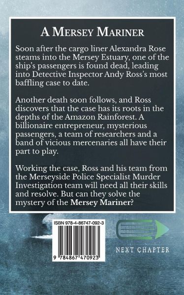 Soon after the cargo liner Alexandra Rose steams into the Mersey Estuary, one of the ship's passengers is found dead, leading into Detective Inspector Andy Ross's most baffling case to date. Another death soon follows, and Ross discovers that the case has its roots in the depths of the Amazon Rainforest. A billionaire entrepreneur, mysterious passengers, a team of researchers and a band of vicious mercenaries all have their part to play. Working the case, Ross and his team from the Merseyside Police Specialist Murder Investigation team will need all their skills and resolve. But can they solve the mystery of the Mersey Mariner?