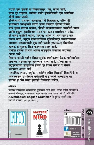 FOR SOME REASON MARATHI STUDENTS ALWAYS TEND TO TURN AWAY FROM THE ENGLISH LANGUAGE. THEIR MINDS SEEM TO HARBOR A VAGUE FEAR ABOUT IT. THEY ARE RELUCTANT TO CONVERSE IN ENGLISH. AS A RESULT, THEY ALWAYS REMAIN LAGGARDS IN COMPETITIVE EXAMINATIONS. THE REASONS FOR THIS STATE OF AFFAIRS ARE TWO-FOLD. ONE IS A DISLIKE FOR ENGLISH GRAMMAR; AND OTHER, A PERVASIVE FEAR COMPLEX IN THE MINDS. THIS BOOK HAS BEEN SPECIALLY CONCEIVED WITH THE FOCUS ON THE STUDENT, AFTER DEVELOPING A NEW METHOD OF TEACHING AND LEARNING. IT AIMS TO HELP CONQUER THIS FEAR COMPLEX AND TO WIPE AWAY THE DISLIKE. EACH SECTION OF THE BOOK HAS BEEN PAINSTAKINGLY EDITED. IT ALSO GIVES ELABORATE MARATHI EXPLANATIONS, DOING AWAY WITH THE OBSTACLE OF TECHNICAL WORDS. THE LANGUAGE HAS BEEN PRESENTED IN A SIMPLE AND INTERESTING MANNER BY USING EASY-TO-UNDERSTAND EXAMPLES. THIS BOOK IS A MUST-HAVE FOR SECONDARY SCHOOL AND JUNIOR COLLEGE STUDENTS, AND ESPECIALLY SO FOR THOSE DESIROUS OF APPEARING FOR COMPETITIVE EXAMINATIONS AS WELL AS FOR GENERAL STUDENTS OF ENGLISH. ¿¿¿¿¿ ¿¿¿¿ ¿¿¿¿¿¿¿ ¿¿ ¿¿¿¿¿¿¿¿¿¿, ¿¿, ¿¿¿ ¿¿¿¿, ¿¿¿ ¿¿¿ ¿¿¿¿¿¿. ¿¿¿¿¿¿¿¿¿ ¿¿¿¿¿ ¿¿¿¿¿¿¿¿¿¿¿¿ ¿¿ ¿¿¿¿¿¿ ¿¿¿¿ ¿¿¿ ¿¿¿¿. ¿¿¿Q¿¿¿¿¿¿¿ ¿¿¿¿¿¿ ¿¿¿¿¿¿¿¿ ¿¿ ¿¿¿¿¿¿¿. ¿¿¿¿¿¿¿ ¿¿¿¿¿¿¿¿¿¿¿ ¿¿¿¿¿¿¿¿¿¿¿ ¿¿¿¿¿¿¿ ¿¿¿ ¿¿¿¿¿¿¿ ¿¿¿¿¿¿ ¿¿¿¿¿. ¿¿¿¿ ¿¿¿¿¿ ¿¿¿¿ ¿¿¿¿¿¿, ¿¿¿¿¿¿¿ ¿¿¿¿¿¿¿¿¿¿¿¿¿ ¿¿¿¿¿¿ ¿¿¿¿ ¿¿¿ ¿¿¿Â¿ ¿¿¿¿¿¿¿¿¿¿¿¿ ¿¿¿¿ ¿¿ ¿¿¿¿ ¿¿¿¿¿¿ ¿¿¿¿¿. ¿¿ ¿¿¿¿ ¿¿¿¿¿¿ ¿¿¿¿¿¿, ¿¿¿¿¿¿; ¿¿¿ ¿¿ ¿¿¿¿¿¿¿¿ ¿¿¿ ¿¿¿¿ ¿¿¿¿, ¿¿¿¿¿¿ ¿¿¿¿¿¿¿¿¿¿¿¿¿¿¿¿¿¿ ¿¿¿¿¿¿¿¿¿¿¿¿¿ ¿¿¿¿¿¿¿¿¿¿¿¿ ¿¿¿¿¿¿-¿¿¿¿¿¿¿¿¿¿ ¿¿ ¿¿¿ ¿¿¿¿¿¿ (¿¿¿¿¿¿) ¿¿¿¿¿¿ ¿¿¿¿, ¿¿ ¿¿¿¿¿¿ ¿¿¿¿¿ ¿¿¿¿¿¿¿ ¿¿¿ ¿¿¿. ¿¿¿¿¿ ¿¿¿¿¿¿¿¿ ¿¿¿¿¿ ¿¿¿¿¿¿ ¿¿¿¿¿¿¿¿¿¿ ¿¿¿¿¿¿¿ ¿¿¿¿¿¿¿ ¿¿¿ ¿¿¿. ¿¿¿¿¿ ¿¿¿¿¿ ¿¿¿¿¿ ¿¿¿¿¿¿¿¿¿¿¿¿¿ ¿¿¿¿¿¿¿¿¿¿ ¿¿¿¿, ¿¿¿¿¿¿¿¿¿ ¿¿¿¿¿¿¿¿ ¿¿¿¿¿ ¿¿¿ ¿¿¿¿¿¿¿ ¿¿¿ ¿¿¿. ¿¿¿¿¿¿ ¿¿¿¿¿¿ ¿¿¿¿¿¿¿¿¿¿¿¿ ¿¿¿¿¿¿¿¿¿¿ ¿¿¿¿¿¿¿ ¿¿ ¿¿¿¿ ¿¿¿¿ ¿ ¿¿¿¿ ¿¿¿¿¿¿¿ ¿¿¿ ¿¿¿. ¿¿¿¿¿¿¿¿ ¿¿¿¿, ¿¿¿¿¿¿¿¿ ¿¿¿¿¿¿¿¿¿ ¿¿¿¿¿¿¿¿¿¿-¿¿¿¿¿¿¿¿¿¿¿¿ ¿ ¿¿¿¿¿¿¿¿¿ ¿¿¿¿¿¿¿¿¿¿¿ ¿¿¿¿¿¿¿¿¿¿¿ ¿ ¿¿¿¿¿¿¿¿¿ ¿¿¿¿¿¿¿ ¿¿ ¿¿¿¿¿¿¿¿ ¿¿ ¿¿¿¿¿ ¿¿¿ ¿¿¿¿¿¿ ¿¿¿¿¿¿¿¿ ¿¿¿¿¿.