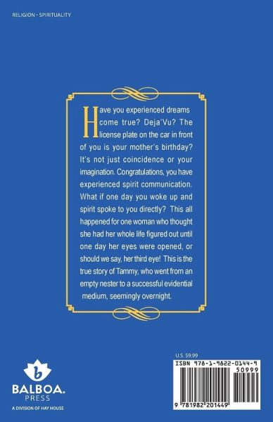 This book is one womans story of her awakening in the spiritual world, from empty nester to evidential medium and healer. This is about how it was foretold, unfolded, and developed so quickly in the middle of my life. More importantly, this book is for those individuals who experience their gifts later in life so that they know and understand that there are many of us out there going through the same thing and that we are not crazy or losing it! This is a message of love, acceptance, and support for those experiencing these same blessings and gifts. Because of this blessing and gifts, I have had opportunities to travel and meet amazing, gifted peoplesome right here at home and others from all over the world. This journey has allowed me to open myself up to a whole new world I had only watched from the sidelines before.
