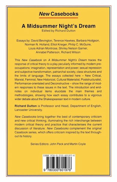 This new casebook on A Midsummer Night's Dream traces the response of critical theory to a play peculiarly informed by modern preoccupations: imagination, representation and power, sexual repression and subjective transformation, patriarchal society, class structures and the limits of language. The essays collected here - New Critical, Marxist, feminist, New Historicist, cultural materialist, post-structuralist, performance - orientated and deconstructive - show the range of modern responses to these issues in the text. The introduction and endnotes on individual items elucidate the main themes and methodologies, showing how each item contributes to a vigorous wider debate about the Shakespearean text in modern culture.