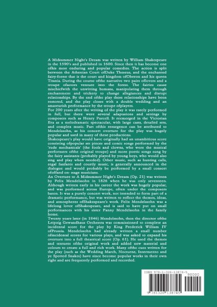 This new edition of A Midsummer Night's Dream presents the Shakespeare play in combination with the reduced piano score of the full music by Felix Mendelssohn.