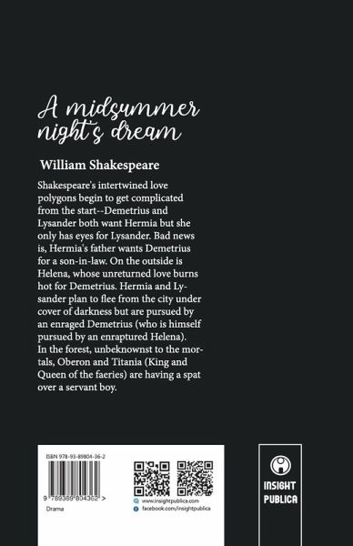 Shakespeare's intertwined love polygons begin to get complicated from the start--Demetrius and Lysander both want Hermia but she only has eyes for Lysander. Bad news is, Hermia's father wants Demetrius for a son-in-law. On the outside is Helena, whose unreturned love burns hot for Demetrius. Hermia and Lysander plan to flee from the city under cover of darkness but are pursued by an enraged Demetrius (who is himself pursued by an enraptured Helena). In the forest, unbeknownst to the mortals, Oberon and Titania (King and Queen of the faeries) are having a spat over a servant boy.