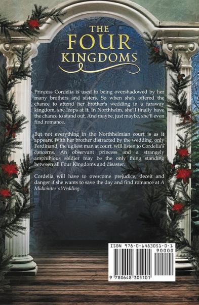 Princess Cordelia is used to being overshadowed by her many brothers and sisters. So when she's offered the chance to attend her brother's wedding in a faraway kingdom, she leaps at it. In Northhelm, she'll finally have the chance to stand out. And maybe, just maybe, she'll even find romance. But not everything in the Northhelmian court is as it appears. With her brother distracted by the wedding, only Ferdinand, the ugliest man at court, will listen to Cordelia's concerns. An observant princess and a strangely amphibious soldier may be the only thing standing between all Four Kingdoms and disaster. Cordelia will have to overcome prejudice, deceit, and danger if she wants to save the day and find romance at A Midwinter's Wedding.