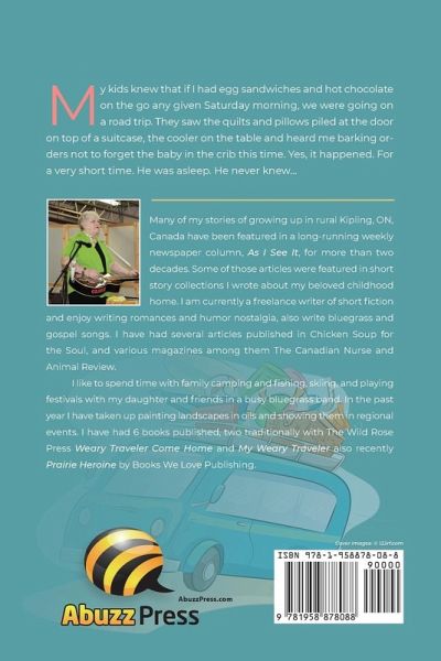 I love driving. I have driven since I was six, and learned on the old Farmall tractor from childhood days in rural Northern Ontario. We never had a car growing up; I swore when I grew up, I would drive somewhere every day. My happiest place is behind the wheel. Home nursing gave me that perk, and every patient I visited turned out another story, names never used and situations slightly changed to assure privacy for participants. My mother lived a thousand miles across the province from us, so in order to ensure my little ones knew their grandmother well, we often dropped everything and headed for 'Grandma's'. Each of those road trips was a story in itself. Something of note would happen every time we set out on such a journey. For instance, my daughter and I were at one time both nursing new babies (and THAT is yet another book). Between the uprooted schedule we both maintained for our babies, we did not take into consideration that our nerves would get the best of us. I recall my daughter saying she was headed for the river bank halfway to our destination and don't bother coming to get her. I could keep both babes since it was obvious she knew nothing about mothering. I swear I don't recall questioning her parenting, but to this day she claims I did. Loudly. Could have been something to do with the fact my last baby was born when I was 45, not much left in the patience locker. I am an obsessive fisherman. My fishing rod is always in the trunk. I would travel out of my way for one little cast to see if fish are biting at a nearby lakeshore, or I would jump into my boat and be gone for hours, sometimes days after the big catch. Those lake trips added many miles to my log of distance and stories. I also play music in a bluegrass band with my daughter. We log many, many miles gong to festivals, practices and local and regional musical events. I have always had a rather large vehicle to contain in the early years kids and all their quilts and cuddle toys and sippy cups and anything else they snuck on board. Later years I had to carry medical supplies, briefcases, office supplies, and the like for work, then instruments and sound equipment for the festival circuit, and a front seat filled with coffee maker and a sizeable cooler for the many meals I had to consume while driving. ¿¿At all times I carried a clipboard and attached pen to record the noteworthy things that happened on my various trips. Those clipboards filled quickly. In later years it was a laptop and/or tablet and cell phone gracing my passenger seat. Since my nursing career began in the early seventies, and motherhood as well, and musician matters all my life, plus the fishing and the snow machine miles, you can imagine I had ample grist for this 'Million Miles' mill. The book is filled with my life on the road, a memoir.