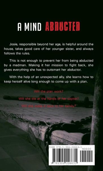Josie, responsible beyond her age, is helpful around the house, takes good care of her younger sister, and always follows the rules. This is not enough to prevent her from being abducted by a madman. Making it her mission to fight back, she gives everything she has to outsmart her abductor. With the help of an unexpected ally, she learns how to keep herself alive long enough to come up with a plan. But, will the plan work? Will she die at the hands of her captor? And if she survives, will she make it back to her family?