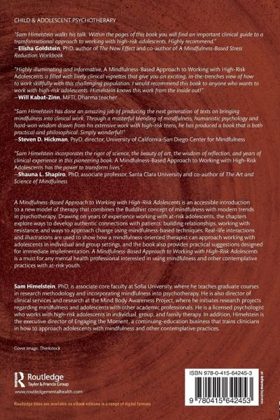 A Mindfulness-Based Approach to Working With High-Risk Adolescents is an accessible introduction to a new model of therapy that combines the Buddhist concept of mindfulness with modern trends in psychotherapy. Drawing on years of experience working with at-risk adolescents, the chapters explore ways to develop authentic connections with patients: building relationships, working with resistance, and ways to approach change using mindfulness-based techniques. Real-life interactions and illustrations are used to show how a mindfulness-oriented therapist can approach working with adolescents in individual and group settings, and the book also provides practical suggestions designed for immediate implementation. A Mindfulness-Based Approach to Working With High-Risk Adolescents is a must for any mental health professional interested in using mindfulness and other contemplative practices with at-risk youth.