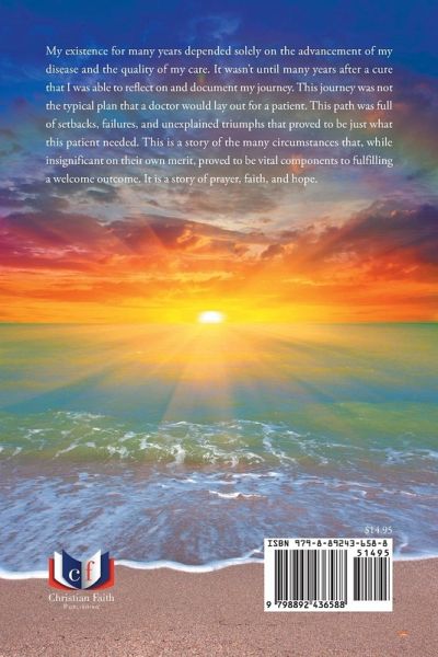 My existence for many years depended solely on the advancement of my disease and the quality of my care. It wasn't until many years after a cure that I was able to reflect on and document my journey. This journey was not the typical plan that a doctor would lay out for a patient. This path was full of setbacks, failures, and unexplained triumphs that proved to be just what this patient needed. This is a story of the many circumstances that, while insignificant on their own merit, proved to be vital components to fulfilling a welcome outcome. It is a story of prayer, faith, and hope.