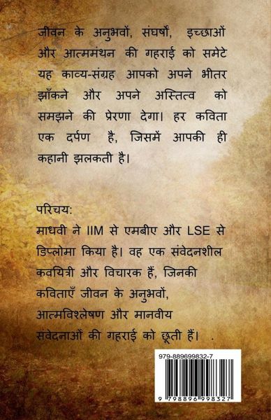 "Astitva Ka Aaina" is a unique collection of poems that unveils untouched aspects of life and profound emotions. This book narrates the stories of feelings and experiences that resonate deeply with every heart. Each poem captures the depth of human emotions. The verses touch upon themes like life's struggles, self-reflection, and human values. This collection compels readers to confront the questions hidden within themselves, questions we often choose to ignore. These poems inspire readers to look inward and understand their existence. They reflect societal ironies, human suffering, and the glimmers of new hope. This book is not just a collection of poems but a journey toward self-discovery and self-acceptance. "Astitva Ka Aaina" is for anyone who wishes to deeply feel life and attempt to understand its untold stories. As readers immerse themselves in these poems, they will find pieces of themselves within and perhaps gain the inspiration to complete the unfinished chapters of their own lives. Are you ready to see your existence through a new lens?