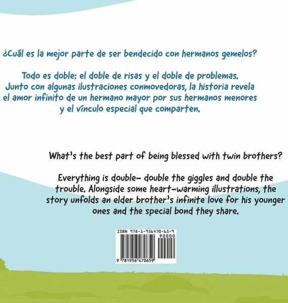 ¿Cuál es la mejor parte de ser bendecido con hermanos gemelos? Todo es doble: el doble de risas y el doble de problemas. Junto con algunas ilustraciones conmovedoras, la historia revela el amor infinito de un hermano mayor por sus hermanos menores y el vínculo especial que comparten.