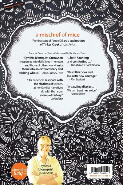 From hanging an effigy of Old Annie to hunting Minnesota gangsters, a little corn-silk-haired girl with black tarred feet learns about death and life from the characters around her. The "mischief of mice" referenced in her title recall the poverty of her youth, but also the realizations that come with age, including the shocking mischief she uncovered in the man she revered most - her father, a jazz musician, and the secrets he carried to the grave. Cynthia Blomquist Gustavson is best known for her poetry, and this book weaves poetry, color illustrations of wildflowers, and vivid storytelling, into her view of the St. Croix Valley's sand hills after the Second World War. This is a book full of sense and life, both lush and simple, real and imaginative. From Jan Airhart, author of 'Mother of My Invention', "Just as a creek carves a path through its environment, Valley Creek shapes Cynthia Gustavson's early life near Afton, Minnesota in the 1950s.... Descriptions of exploits in the Valley, including the creek and its accompanying trail, are reminiscent of Annie Dillard's exploration of Tinker Creek. Despite the unwelcome mice making mischief within the walls of her childhood home and the secret deceptions that are eventually uncovered, Gustavson tells her story with compassion for those she's loved-even those who betrayed her. Music is a solace woven throughout the narrative, a legacy of her jazz musician father, while chapters are punctuated with the author's beautifully crafted poetry. A Mischief of Mice is a delightful depiction of one woman's ongoing relationship with nature and her resulting reverence for all of life."