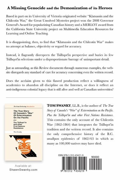 Based in part on its University of Victoria originated website "Klatsassin and the Chilcotin War," the Great Unsolved Mysteries project won the 2008 Governor General's Award for popularizing Canadian history and a MERLOT award from the California State University project on Multimedia Education Resources for Learning and Online Teaching. It is disappointing, then, to find that "Klatsassin and the Chilcotin War" makes no attempt at balance, objectivity or accuracy. Instead, it flagrantly disrespects the Tsilhqot'in perspective and buries its few Tsilhqot'in selections under a disproportionate barrage of unimportant detail. Just as astounding, as this Review documents at length, the website disregards any standard of care for accuracy from even the written record. Does the acclaim given this flawed production reflect a willingness of academics to abandon all discipline on the Internet, or does it reflect an anti-indigenous colonial legacy still alive and well at Canadian universities?