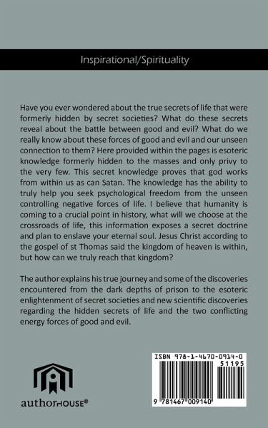Have you ever wondered about the true secrets of life that were formerly hidden by secret societies? What do these secrets reveal about the battle between good and evil? What do we really know about these forces of good and evil and our unseen connection to them? Here provided within the pages is esoteric knowledge formerly hidden to the masses and only privy to the very few. This secret knowledge proves that god works from within us as can Satan. The knowledge has the ability to truly help you seek psychological freedom from the unseen controlling negative forces of life. I believe that humanity is coming to a crucial point in history, what will we choose at the crossroads of life, this information exposes a secret doctrine and plan to enslave your eternal soul. Jesus Christ according to the gospel of st Thomas said the kingdom of heaven is within, but how can we truly reach that kingdom?