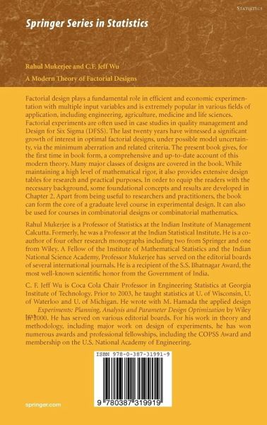 From the reviews: "Minimum aberration (shortened to MA in this text) is a central feature in this excellent monograph, and the authors' stated intentions of 'providing a comprehensive account of the modern theory of factorial designs with the NMA appraoch at its core' (p. 4) are fully achieved." N.R. Draper for Short Book Reviews of the ISI, December 2006 "This book provides a unified summary of current research on the assessment through optimality criteria and construction methods for factorial and fractional factorial designs. ...[I]t contains excellent insights into this important class of desings." Christine Anderson-Cook, JASA, Vol. 102, No. 478, June 2007 "This book covers the theory of selecting minimum aberration factorial designs. ... The book will serve as a great text for an advanced graduate level course in design theory for students ... . The book will surely become an invaluable resource for researchers and graduate students doing research ... . In addition, practitioners will also find the book useful ... . Overall, this is a very well written book and a necessary addition to the existing literature on the design of factorial experiments." (Jason Loeppky, Technometrics, Vol. 49 (3), August, 2007) "This book presents the modern theory of regular fractional factorial designs and is written by two leading experts in the field. It is intended for researchers, but practitioners will find useful the many tables of designs that are included. ... This book is invaluable for someone who wants to understand this literature. Because the authors and their students are responsible for much of this literature, the book should be of great interest to anyone involved in research in this area." (William I. Notz, Mathematical Reviews, Issue 2007e)