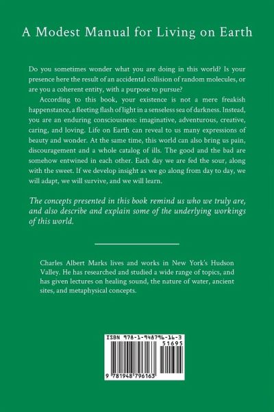 Do you sometimes wonder what you are doing in this world? Is your presence here the result of an accidental collision of random molecules, or are you a coherent entity, with a purpose to pursue? According to this book, your existence is not a mere freakish happenstance, a fleeting flash of light in a senseless sea of darkness. Instead, you are an enduring consciousness: imaginative, adventurous, creative, caring, and loving. Life on Earth can reveal to us many expressions of beauty and wonder. At the same time, this world can also bring us pain, discouragement and a whole catalog of ills. The good and the bad are somehow entwined in each other. Each day we are fed the sour, along with the sweet. If we develop insight as we go along from day to day, we will adapt, we will survive, and we will learn. The concepts presented in this book remind us who we truly are, and also describe and explain some of the underlying workings of this world.