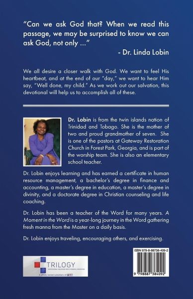 "Can we ask God that? When we read this passage, we may be surprised to know we can ask God, not only ..." - Dr. Linda Lobin We all desire a closer walk with God. We want to feel His heartbeat, and at the end of our "day," we want to hear Him say, "Well done, my child." As we work out our salvation, this devotional will help us to accomplish all of these.