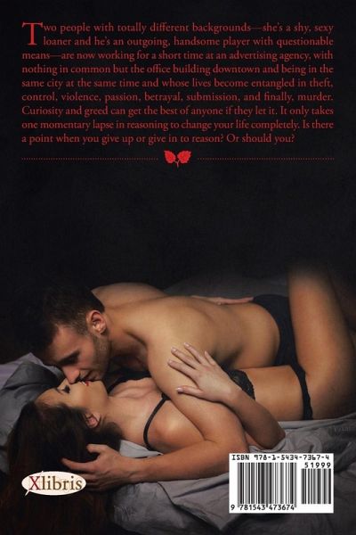 Two people with totally different backgrounds-she's a shy, sexy loaner and he's an outgoing, handsome player with questionable means-are now working for a short time at an advertising agency, with nothing in common but the office building downtown and being in the same city at the same time and whose lives become entangled in theft, control, violence, passion, betrayal, submission, and finally, murder. Curiosity and greed can get the best of anyone if they let it. It only takes one momentary lapse in reasoning to change your life completely. Is there a point when you give up or give in to reason? Or should you?