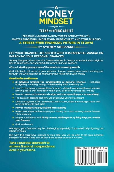 Get your financial life sorted with this essential manual on improving your personal finances! Financial management is a life skill not often introduced to millions of young adults, and this deeply affects their future. In fact, more than half of adults are financially anxious, with most living paycheck to paycheck - not because they have zero money, but because they only have a single source of income, mainly their salaries. However, their money does not last long as they don't know how to manage their finances well. Fortunately, you can learn financial management to avoid a similar fate and prepare for a better future. You might think you're too young to learn about adulting, but that's where you're wrong. Starting young is one of the secrets to amassing wealth. Sydney Sheppard, the author of A Growth Mindset for Teens, comes back with insightful tips to guide teens and young adults toward financial freedom. And this book will serve as your personal finance mentor-slash-coach, walking you through the whole journey of improving your relationship with money. Read inside to discover:31 activities covering the fundamentals of personal finances - including budgeting, spending, saving, understanding debt, investing, etc. - to develop your money management skills quickly! How to change your perspective of money - debunk money myths and remove limiting beliefs that have been holding you back from valuing your money How to create and maintain a budget - fix your unhealthy spending habits and start spending your money wisely! The basics of banking and why you must have your own account - increase your money without doing anything with a powerful tool! (hint: it involves compounding) Debt management 101: understand credit scores, build and manage credit, and avoid getting into bad debt How to manage and pay student loans quickly - don't let student debt slow you down! Investment opportunities to put your money on - start earning passive income while sleeping Helpful workbooks and 31-day money challenges to quickly help you master your finances And much more! Managing your finances may be challenging, especially if you need help figuring out where to begin. But with this must-have manual by your side, you will be able to set your priorities straight and start taking care of your hard-earned money in no time. You will be equipped with the necessary knowledge about the importance of money management, activities you can easily apply daily, and skills you can use across various areas in your life. Managing your finances has never been this easy!Take a practical approach to achieve financial independence, even in your teens.