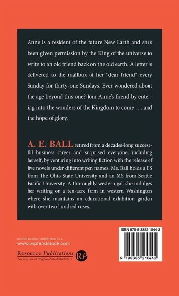 Anne is a resident of the future New Earth and she's been given permission by the King of the universe to write to an old friend back on the old earth. A letter is delivered to the mailbox of her "dear friend" every Sunday for thirty-one Sundays. Ever wondered about the age beyond this one? Join Anne's friend by entering into the wonders of the Kingdom to come . . . and the hope of glory.