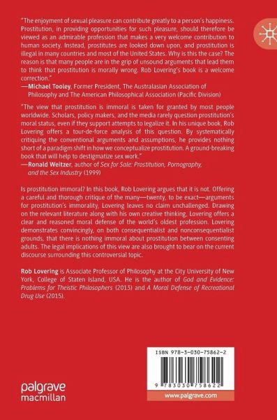 Is prostitution immoral? In this book, Rob Lovering argues that it is not. Offering a careful and thorough critique of the many-twenty, to be exact-arguments for prostitution's immorality, Lovering leaves no claim unchallenged. Drawing on the relevant literature along with his own creative thinking, Lovering offers a clear and reasoned moral defense of the world's oldest profession. Lovering demonstrates convincingly, on both consequentialist and nonconsequentialist grounds, that there is nothing immoral about prostitution between consenting adults. The legal implications of this view are also brought to bear on the current discourse surrounding this controversial topic.