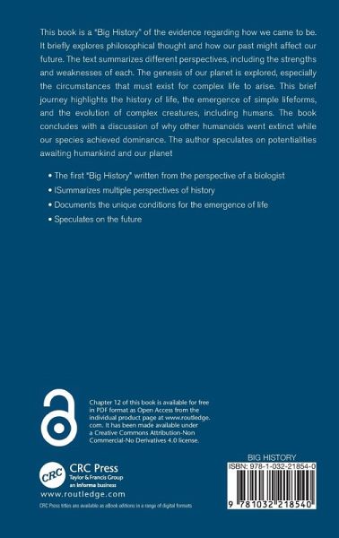 This book is a "big history" of the evidence regarding how we came to be. It explores philosophical thought and how our past might affect our future. The text reviews different perspectives and the strengths and weaknesses of each. This journey highlights the history of life, the emergence of life forms, and the evolution of complex creatures.