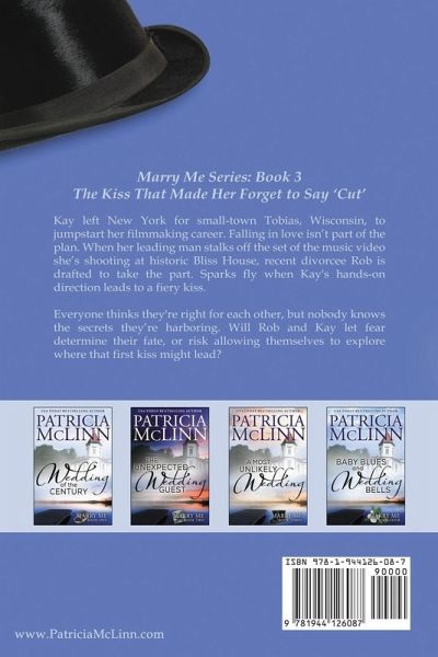 The kiss was a rehearsal, did she forget to say 'Cut'?Filmmaker Kay Aaronson left New York for small-town Tobias, Wisconsin, to jumpstart her career. Falling in love wasn't part of the plan.When Kay's leading man stalks off the set of the music video she's shooting at the historic Bliss House, the town's wise and beloved Miss Trudi invites recent divorcee Rob Dalton to take the part. Kay sets the scene, increasingly distracted by this businessman who's far more handsome than her missing star. When her hands-on direction leads to a fiery kiss, the sparks are visible for all to see. Everyone thinks they're right for each other, but nobody knows the secrets they're harboring. Or what it might mean if those secrets became public. Will Rob and Kay let fear determine their fate, or risk allowing themselves to explore where that first kiss might lead?A Most Unlikely Wedding, Book 3 of USA Today bestselling author Patricia McLinn's Marry Me series, is a moving, passionate contemporary romance that will captivate fans of Bella Andre, Roxanne St. Clair, and Jill Shalvis.Readers Praise A Most Unlikely Wedding"I couldn't put it down!" "I was not only wanting to find out what happens with Kay and Rob, but was dying to know their scandals and what would happen with them. And the whole town of Tobias is filled with interesting characters. Two thumbs up!" "(McLinn's) characters go through really great growth, both within themselves and with each other, ... It makes it that much more satisfying.""Kay is feisty and fantastic, Rob is hunky and frustrating ... They've both got stuff going on that's making it hard for them to be completely open with each other -- and with the reader, which adds a whole new level of anticipation to the reading." Praise for the Marry Me series"With her two latest books set in a perfectly realized and perfectly charming small town, McLinn has created two beautifully written, richly emotional love stories that are a joy to read." - John Charles, American Library Association"Gifted Patricia McLinn has written another wonderful series filled with emotion and romance." -- CataRomance Reviews"McLinn has done a marvelous job creating the stories in this series." -- Fresh Fiction Get all the books in Patricia McLinn's Marry Me seriesWedding of the CenturyThe Unexpected Wedding GuestA Most Unlikely Wedding Baby Blues and Wedding BellsAnd if you like Patricia's small-town romance stories, try her Seasons in a Small Town series What Are Friends For? (Spring)The Right Brother (Summer)Falling for Her (Autumn)Warm Front (Winter)