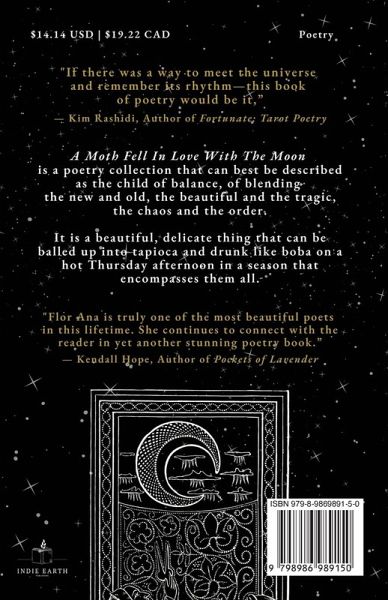 A Moth Fell In Love With The Moon is a poetry collection that can best be described as the child of balance, of blending the new and old (styles of poetry, that is), the beautiful and the tragic, and the chaos and the order-all of living on this rock floating in the ether. It is a beautiful, delicate thing that can be balled up into tapioca and drunk like boba on a hot Thursday afternoon in a season that encompasses all of them.