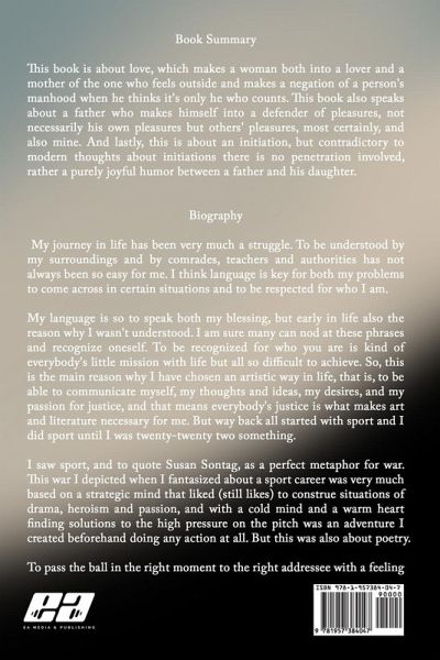 This book is about love, which makes a woman both into a lover and a mother of the one who feels outside and makes a negation of a person's manhood when he thinks it's only he who counts. This book also speaks about a father who makes himself into a defender of pleasures, not necessarily his own pleasures but others' pleasures, most certainly, and also mine. And lastly, this is about an initiation. Contradictory to modern thoughts about initiations this is a purely joyful humor between a father and his daughter.