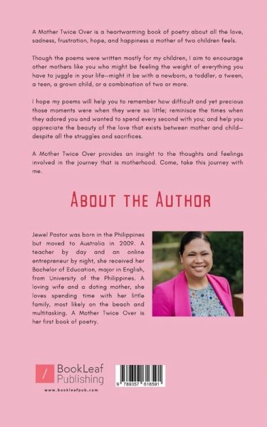 ""A Mother Twice Over is a heartwarming book of poetry about all the love, sadness, frustration, hope, and happiness a mother of two children feels. Though the poems were written mostly for my children, I aim to encourage other mothers like you who might be feeling the weight of everything you have to juggle in your life-might it be with a newborn, a toddler, a tween, a teen, a grown child, or a combination of two or more. I hope my poems will help you to remember how precious those moments when they were so little; reminisce the times when they adored you and wanted to spend every second with you; and help you appreciate the beauty of the love that exists between mother and child-despite all the struggles and sacrifices. A Mother Twice Over provides an insight to the thoughts and feelings involved in the journey that is motherhood. Come, take this journey with me.""
