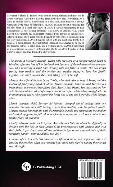 The drama A Mother's Bleedin' Heart tells the story of a mother whose heart is bleeding after the loss of her husband and because of the behavior of her younger son, who is having a hard time dealing with his father's death. The son keeps getting into trouble, and the mother has trouble trying to keep her family together-so much so that she is not taking care of herself. Mary is the wife of the late Leroy Tubbs, who died after a long sickness, and the mother of four young-adult children: Tyrese, Amanda, Shi-Ann, and Marcus. It's been almost two years since Leroy died. Mary's best friend, Sue, has stuck by her side throughout the ordeal of Leroy's illness and after, while Mary struggles to do everything she can to take care of her home just as she and Leroy did when he was alive. Mary's youngest child, 21-year-old Marcus, dropped out of college after one semester because he's still having a hard time dealing with his father's death. Marcus started hanging out with disreputable friends and mistreating his mother and ended up going to jail. Marcus's family is trying to reach out to him to see what's going on with him. Finally, Marcus confesses to Tyrese, Amanda, and Shi-Ann about his difficulty in dealing with the loss of their father. (This preoccupation with Marcus and with their father's passing causes all the children to ignore the physical pain of their surviving parent-until it's almost too late.) Families often deal with this issue in real life, and the person or persons who are causing the problem often don't realize how much pain they're putting their loved ones through.