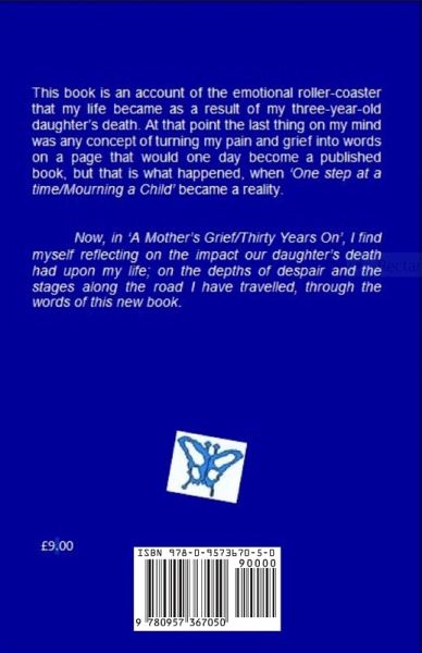 This book is an account of how the author dealt with the 'roller-coaster' of emotions she suffered as a result of the death of her daughter. It reflects on the stages of grief which she wrote about in her first book, 'One Step at a Time/Mourning a Child', (ISBN 978-0-9573670-3-6). Now in, 'A Mother's Grief/Thirty Years On', she looks back to consider the long-term impact her tragic loss had on the way she continued to live and on the other members of her family; children and husband. Betty's life changed forever when, Lisa, drowned in a tragic swimming pool accident. It is her personal story which led her on to offer support to other bereaved parents through, The Compassionate Friends. This is an international organisation which helps people come to terms with the loss of their children. Betty has managed to find a true sense of peace in her heart and mind.