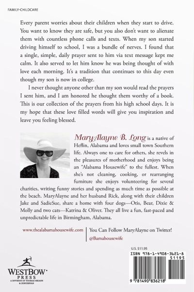 Every parent worries about their children when they start to drive. You want to know they are safe, but you also don't want to alienate them with countless phone calls and texts. When my son started driving himself to school, I was a bundle of nerves. I found that a single, simple, daily prayer sent to him via text message kept me calm. It also served to let him know he was being thought of with love each morning. It's a tradition that continues to this day even though my son is now in college. I never thought anyone other than my son would read the prayers I sent him, and I am honored he thought them worthy of a book. This is our collection of the prayers from his high school days. It is my hope that these love filled words will give you inspiration and leave you feeling blessed.