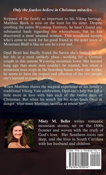 Now with an extra bonus epilogue! Only the fearless believe in Christmas miracles. Stripped of the family so important to his Viking heritage, Matthias Bjork is now on the hunt for his sister. Despite combing the entire Wyoming Territory, he hasn't found any substantial leads regarding her whereabouts, but he has discovered a most unusual woman. This woodland nymph who's come to work for his good friend in the quiet town of Mountain Bluff is like no one he's ever met. Opal Boyd has finally found the haven she's longed for all her life in a most unlikely place-working for a German couple in this remote Wyoming mountain town. She learned long ago that most men couldn't be trusted, but when a mountain man stops in the boarding house where she works, he seems to have the respect and affection of the two people she's learned to trust implicitly. When Matthias shares the magical experience of his family's traditional Viking Yule celebration, Opal can't help but fall a little more in love with him each of the twelve days of Christmas. But when his search for his sister lands Opal in danger, what must Matthias sacrifice to rescue her? From a USA Today bestselling author comes another thrilling tale of love and courage on the western frontier.