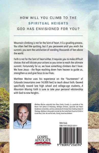 How will you climb to the spiritual heights God has envisioned for YOU? Mountain climbing is not for the faint of heart. It is a grueling process. You often feel like quitting, but if you persevere until you reach the summit, you earn the satisfaction of standing thousands of feet above the world. Faith is not for the faint of heart either. It requires you to make difficult choices that will dictate your actions as you strive to reach the ultimate summit. Fortunately for us, we have something climbers don't have. We have Jesus - the Rope reaching down from heaven to guide us, strengthen us and give focus to our lives. Matthew Morine uses his experience on the "fourteeners" of Colorado (mountains over 14,000 feet) to teach about faith. Geared specifically toward late high school and college-age students, A Mountain Moving Faith is sure to take your personal relationship with God to new heights.