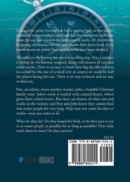 A magnetic polar reversal has left a gaping hole in the earth's protective magnetosphere, and harmful electromagnetic radiation from the sun has stricken the unprotected earth. All electronics, including electronics on cars and trucks, have been fried. Even transformers on power lines and batteries have been disabled. All traffic on the freeway has come to a rolling stop. Pete, a trucker, is sitting on the freeway stopped, along with dozens of cars and other trucks. There is no way to know how big the affected area is-could be the size of a small city or county or could be half the planet facing the sun. There is no way to know and no way to find out. Pete, an atheist, meets another trucker, John, a humble Christian family man. John's truck is loaded with canned beans, which gives them a food source. But there are dozens of other cars and trucks in the vicinity, and Pete and John know they cannot feed that many people for very long. Help may not come for days or weeks-may not come at all. What do they do? Do they hoard the food, or do they pass it out to as many people as possible for as long as possible? Does help reach them in time? Do they survive?