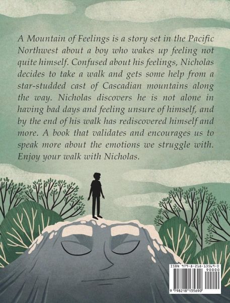 A Mountain of Feelings is a story set in the Pacific Northwest about a boy who wakes up feeling not quite himself. Confused about his feelings, Nicholas decides to take a walk and gets some help from a star-studded cast of Cascadian mountains along the way. Nicholas discovers he is not alone in having bad days and feeling unsure of himself, and by the end of his walk has rediscovered himself and more. A book that validates and encourages us to speak more about the emotions we struggle with. Enjoy your walk with Nicholas.