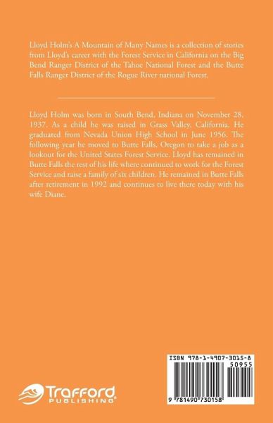 A Mountain of Many Names is a collection of stories from Lloyd's career with the Forest Service in California on the Big Bend Ranger District of the Tahoe National Forest and the Butte Falls Ranger District of the Rogue River national Forest.