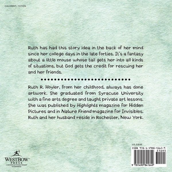 Ruth has had this story idea in the back of her mind since her college days in the late forties. It's a fantasy about a little mouse whose tail gets her into all kinds of situations, but God gets the credit for rescuing her and her friends.