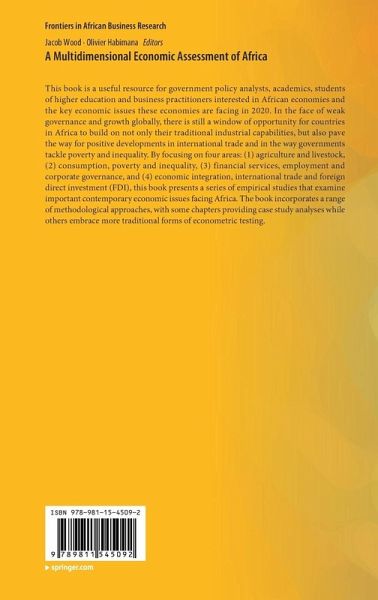 1. An Overview: A Multidimensional Economic Assessment of Africa.- 2. Determinants of Smallholders' Export-Oriented Cash Crop Production Decisions in Ethiopia: A Case of the Sesame Sector.- 3. Spatial integration of livestock markets in Ethiopia.- 4. New Urban Consumption Patterns and Local Agriculture: Application to the Bukavu HORECA Sector (DRC).- 5. Multidimensional Inequality in Ethiopia.- 6. Factors Influencing Consumers' Preferences for Cement Products: Case of Cement Brands in Ethiopia.- 7. The Value of Roads in Rural Household Consumption.- 8. Corporate Social Responsibility Practices and Motivations in a Least Developed Country.- 9. Psychological Determinants of Employees' Intentions to Retire: A Case of Public Universities in Kenya.- 10. Implementation of Corporate Governance Strategy: An Overview of Africa.- 11. Efficiency of Commercial Banks in Ghana.- 12. Cooperative Societies as a Distribution Channel forInsurance Services in Kenya: A Situational Analysis.- 13. The FDI-Domestic Investment Nexus in SSA.- 14. China's Unprecedent Move and Its Repercussion on African Economies: Empirical Evidence from Ethiopia.- 15. Does Free Trade and Institutional Quality Affect the Economic Community of the West African Trading Bloc?.