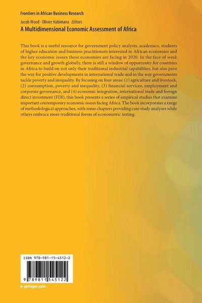 1. An Overview: A Multidimensional Economic Assessment of Africa.- 2. Determinants of Smallholders' Export-Oriented Cash Crop Production Decisions in Ethiopia: A Case of the Sesame Sector.- 3. Spatial integration of livestock markets in Ethiopia.- 4. New Urban Consumption Patterns and Local Agriculture: Application to the Bukavu HORECA Sector (DRC).- 5. Multidimensional Inequality in Ethiopia.- 6. Factors Influencing Consumers' Preferences for Cement Products: Case of Cement Brands in Ethiopia.- 7. The Value of Roads in Rural Household Consumption.- 8. Corporate Social Responsibility Practices and Motivations in a Least Developed Country.- 9. Psychological Determinants of Employees' Intentions to Retire: A Case of Public Universities in Kenya.- 10. Implementation of Corporate Governance Strategy: An Overview of Africa.- 11. Efficiency of Commercial Banks in Ghana.- 12. Cooperative Societies as a Distribution Channel forInsurance Services in Kenya: A Situational Analysis.- 13. The FDI-Domestic Investment Nexus in SSA.- 14. China's Unprecedent Move and Its Repercussion on African Economies: Empirical Evidence from Ethiopia.- 15. Does Free Trade and Institutional Quality Affect the Economic Community of the West African Trading Bloc?.