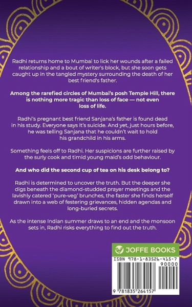 **MEETI SHROFF-SHAH WAS LONGLISTED FOR THE CWA JOHN CREASEY (NEW BLOOD) DAGGER IN 2022!** Radhi returns home to Mumbai to lick her wounds after a failed relationship and a bout of writer's block, but she soon gets caught up in the tangled mystery surrounding the death of her best friend's father. Among the rarefied circles of Mumbai's posh Temple Hill, there is nothing more tragic than loss of face - not even loss of life. Radhi's pregnant best friend Sanjana's father is found dead in his study. Everyone says it's suicide. And yet, just hours before, he was telling Sanjana that he couldn't wait to hold his grandchild in his arms. Something feels off to Radhi. Her suspicions are further raised by the surly cook and timid young maid's odd behaviour. And who did the second cup of tea on his desk belong to? Radhi is determined to uncover the truth. But the deeper she digs beneath the diamond-studded prayer meetings and the lavishly catered 'pure-veg' brunches, the faster she finds herself drawn into a web of festering grievances, hidden agendas and long-buried secrets. As the intense Indian summer draws to an end and the monsoon sets in, Radhi risks everything to find out the truth. A FABULOUSLY ENGROSSING AND ATMOSPHERIC CRIME MYSTERY THAT WILL TRANSPORT YOU STRAIGHT TO MUMBAI. Fans of Faith Martin, Richard Osman, Victoria Dowd, Vaseem Khan, Ian Moore, Louise Penny, Shamini Flint and Agatha Christie will devour this brilliant, atmospheric murder mystery.